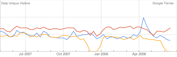 Hier ein chart (png, 23 KB) , das den traffic von drei websites nach *google trend*-Maßstäben miteinander vergleicht.